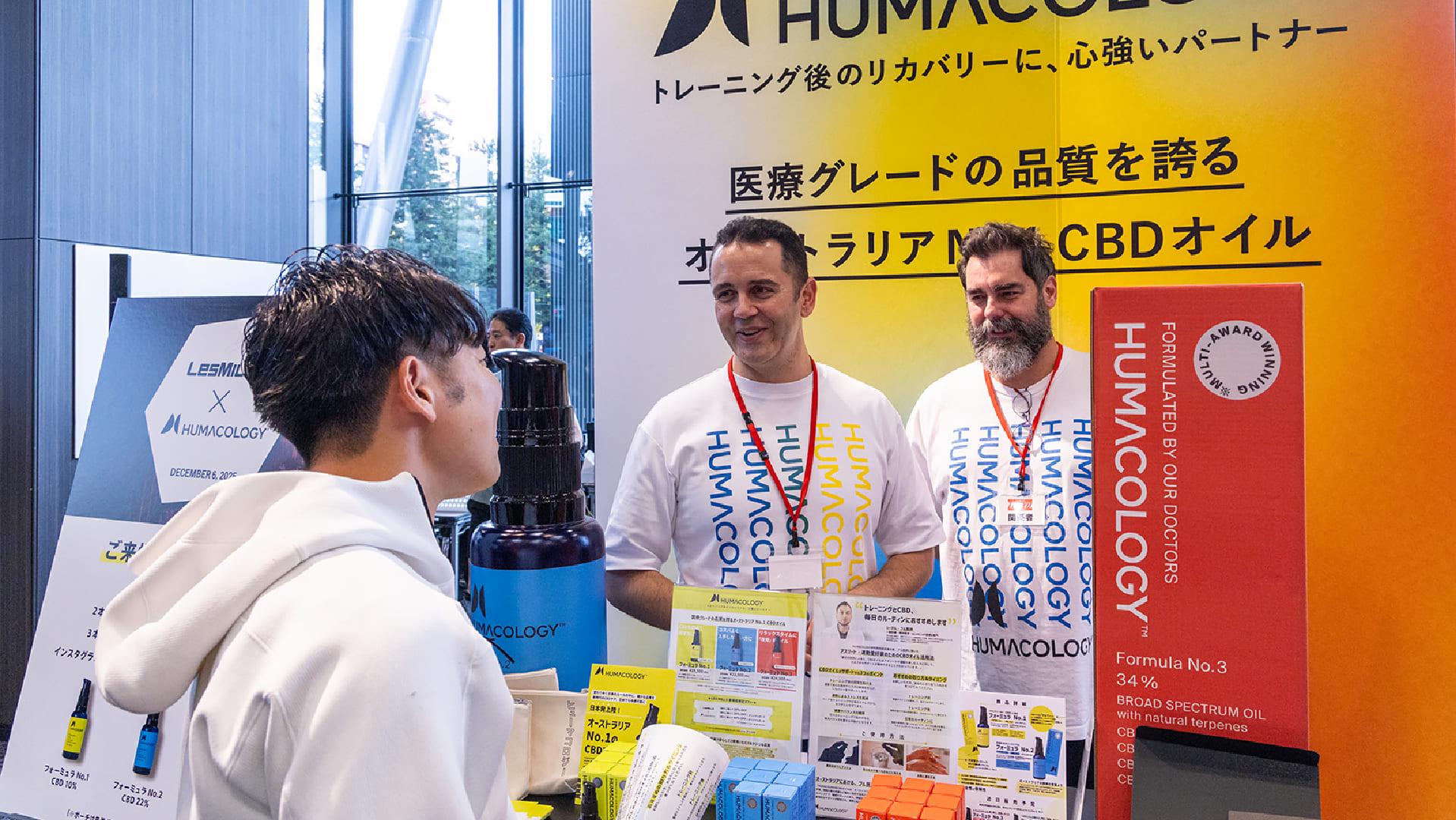 トレーニング後のリカバリーに心強く寄り添うパートナーとして、HUMACOLOGYのCBDオイルは多くの来場者に新たな選択肢を示した。
